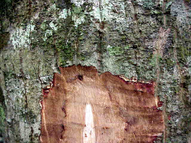 Field Characters: Large canopy tree (up to 40 m high); Bole markedly fluted (c. 100 cm diam.); straight; buttresses sometimes buttresses present or buttresses absent; spines spines absent; aerial roots aerial roots absent; stilt roots stilt roots absent; Bark grey or pale brown, rough, fissured and cracked and pustular, lenticels rounded/swelling; Subrhytidome (under-bark) red; less than 25 mm thick (c. 5 mm), 20.0-25.0; bark blaze consisting of one layer; faintly to non-aromatic; pleasant; outer blaze red or pale brown, markings absent, fibrous; inner blaze red or pale brown, markings absent, fibrous or granular without splinters; bark exudate (sap) present, colourless, not readily flowing (spotty), colour not changing on exposure to air, not sticky; terminal buds not enclosed by leaves.