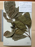Leaves: Leaves spaced along branches, spiral (leaves occurring singly at a node and arranged spirally up the branchlet), simple (a leaf composed of a single blade); petiole present, not winged, attached to base of leaf blade, not swollen; leaves broadest above middle, (8.0-) 10.0-20.0 cm, 4.0-10.0 cm; symmetric, crenate, not dissected or lobed, obtuse or acute, venation pinnate, secondary veins open, prominent, intramarginal veins absent; leaves lower surface pale green, upper surface dark green (glossy (to mostly glossy) or green, indumentum (hairs) absent or present, indumentum (hairs) dense to sparse; absent; domatia absent; stipules absent.